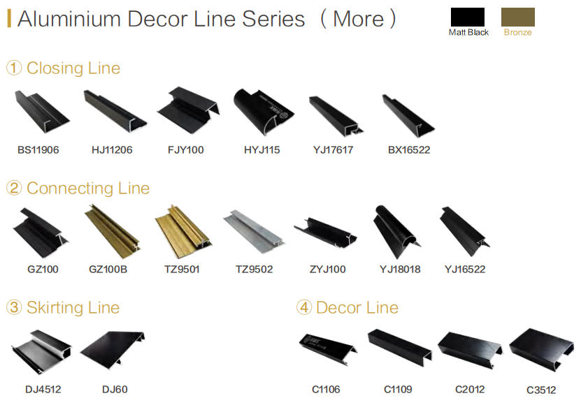 WPC composite boards can either be connected side by side or with decorative metal profiles which are available in multiple colors. The metal profiles will also protect the panels from wear and tear. For the metal edge material of the WPC wall panel there are also a variety of colours to choose from: dumb black, matte titanium, brass, dumb grey and so on.